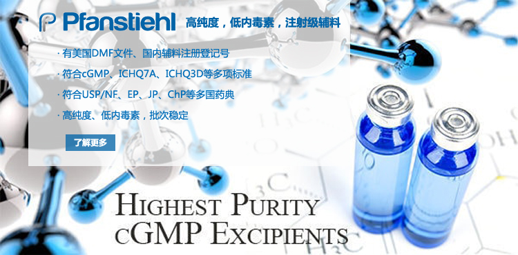 “熱烈祝賀Pfanstiehl的注射級甘氨酸Glycine(G-140)喜獲CDE登記號F20250000403, 這是Pfanstiehl產品獲得的第18個CDE登記號!”甘氨酸在醫藥輔料制劑中應用廣泛,, 可作為緩沖劑,增溶劑,穩定劑等,具有諸多優勢。Pfanstiehl秉承一貫高品質理念,為滿足全球生物制藥行業對于高品質甘氨酸的需求,隆重推出的注射級甘氨酸Glycine (G-140), 具有超高純度,超低內毒素,超低金屬殘留的特點,單獨檢測29種金屬離子,并且新增DNA,RNA,DNA酶,RNA酶和脂肪酶,亞硝酸鹽等多項質量指標的檢測,符合多國藥典規定(USP, EP, BP, JPE, ChP),可用于生物治療性藥物和疫苗的生產。產品信息:· 產品名稱:Glycine, High Purity, Low Endotoxin, Low Metals, USP, EP, BP, JPE, ChP (G-140)· 中文名稱:甘氨酸· 分子式:C2H5NO2· 分子量:75.07 g / mol· CAS號:56-40-6· 產品貨號:G-140產品特點: · 超高純度,超低內毒素,超低微生物含量,超低金屬雜質殘留· 質量指標新增DNA,RNA,DNA酶,RNA酶,脂肪酶和亞硝酸鹽檢測· 符合多國藥典:USP, EP, BP, JPE, ChP· 符合ICH Q3D標準· 符合GMP標準· 已獲DMF和CDE登記號 產品應用:· 緩沖劑· 穩定劑· 增溶劑如果您對Pfanstiehl注射級別Glycine G-140感興趣,歡迎聯系Pfanstiehl 中國區代理商北京西美杰科技有限公司獲得如下詳細的產品概況說明文件和測試樣品。Pfanstiehl Inc.最新產品系列如下,歡迎聯系北京西美杰科技有限公司獲取100g裝免費樣品。北京西美杰科技有限公司為Pfanstiehl中國代理,為客戶提供完善的技術支持與售后服務。歡迎撥打西美杰客服電話400-050-4006或者登陸網站www_xmjsci_com.stkxw.com了解更多信息。 更多>